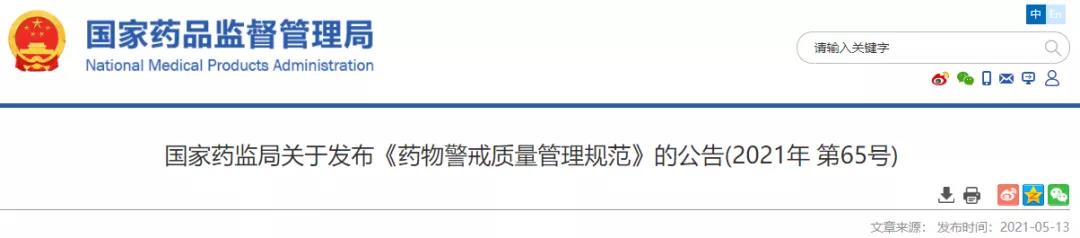凭证《中华人民共和国药品管理法》《中华人民共和国疫苗管理法》,为规范和指导药品上市允许持有人和药品注册申请人的药物警戒运动,国家药监局组织制订了《药物警戒质量管理规范》,现予以宣布,并就实验《药物警戒质量管理规范》有关事宜通告如下: