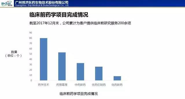 阻止2017年12月末,公司累计为客户提供临床前研究服务200余项
