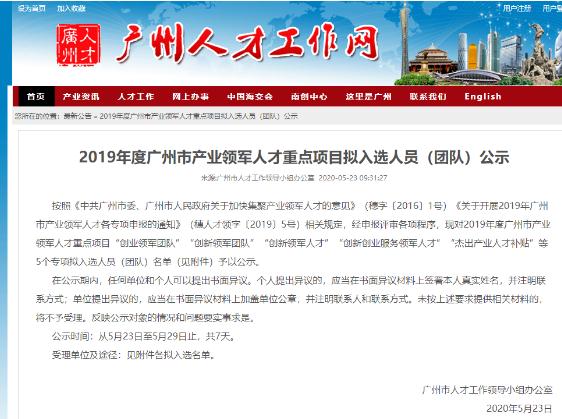 日前,广州市人才事情向导小组办公室印发了《2019年度广州市工业领武士才重点项目拟入选职员(团队)公示》,333体育官网医药董事长王廷春博士作为立异创业服务领武士才榜上著名,荣膺2019年广州市工业领武士才。