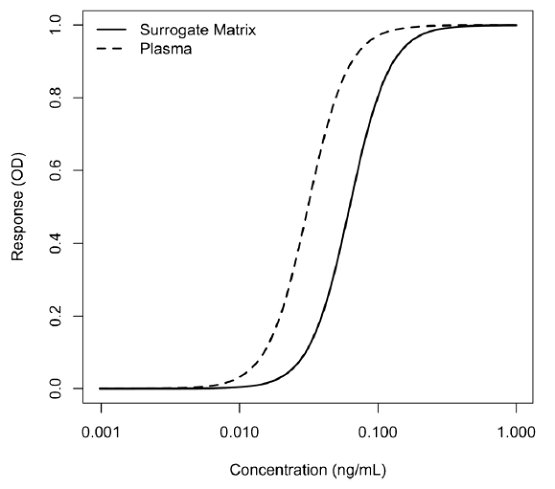 µ±Ê¹ÓÃÌæ»»»ùÖÊÀ´ÖƱ¸Ð£×¼Æ·Ê±£¬¸ÃÉúÎïÆÊÎöÒªÁìÓ¦¸ÃʹÓÃÑо¿Ñù±¾»ùÖÊÖÆ±¸µÄQCsºÍÑо¿»ùÖÊÑ¡ÔñÐÔÑù±¾£¨study matrix selectivity sample£©¾ÙÐÐÑéÖ¤£¬²¢ÓëÌæ»»»ùÖÊÖÐÖÆ±¸µÄУ׼ÇúÏß¾ÙÐнÏÁ¿ºÍÆÀ¹À¡£³ý´ËÖ®Í⣬»¹½¨ÒéÆÊÎöÕß¾ÙÐÐÆäËûÊÔÑ飬ÒÔÖ¤ÊµÌæ»»»ùÖÊÓëÑо¿»ùÖʵÄÏ¡ÊÍÇúÏßÁ½ÕßÖ®¼äµÄ¿É±ÈÐÔ¡£Ò»ÖÖÆÕ±é½ÓÊܵÄÒªÁìÊDzâÊÔÉÏϽ¥½üÏß¡¢ÔöÌíÂÊ£¨growth rate£©ÒÔ¼°5PLÇúÏßÖÐ²î³Ø³ÆÒò×ӵĵÈͬÐÔ¡£Ä¿½ñÒµ½çÄÚÒÑÌá³öÔõÑù²âÊÔÆ½ÐÐÐÔ£¨parallelism£©µÄÒªÁ죬ƽÐÐÐÔ²âÊÔÊÇÒ»¸öÆÀ¹ÀLBAÒªÁìÏàÃé׼ȷÐԵĻù±¾ÊµÑ顣̫ͨ¹ýÎöÏ¡ÊͶԻùÖÊÖÐÄÚÔ´ÐÔ´ý²âÎﶨÁ¿µÄÓ°Ï죬¿ÉÒÔÔÚµ¥¸öʵÑéÖÐÆÀ¹À¸Ã²âÊÔÒªÁìµÄÑ¡ÔñÐÔ¡¢»ùÖÊЧӦ¡¢ËùÐèµÄ×îСϡÊÍÂÊ¡¢¿µ½¡ºÍ»¼²¡ÈËȺµÄÄÚÔ´ÐÔ´ý²âÎïµÄˮƽÒÔ¼°LLOQ¡£
