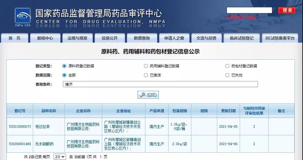 克日,333体育官网医药子公司广州333体育官网生物医药科技园有限公司自主开发的他达拉非质料药(挂号号Y20210000073)和自主开发的无水硫酸钠质料药(挂号号Y20200001480)在国家药品监视管理局乐成备案挂号。